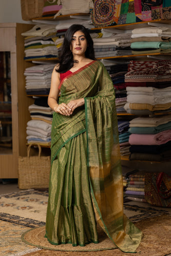 MAHIRA TISSUE SAREE PEACOCK GREEN