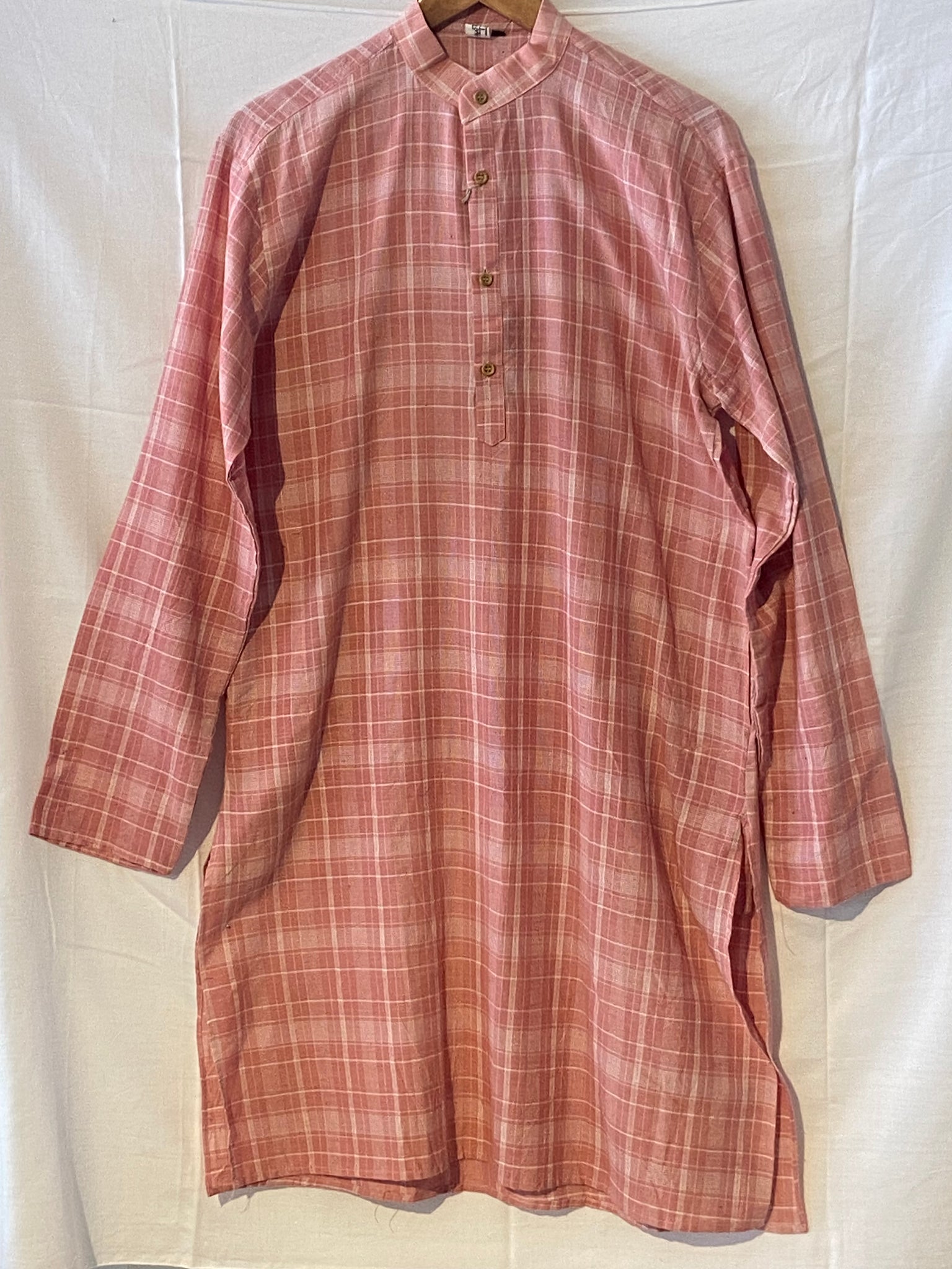 HAND WOVEN ON HANDLOOM THIS KHADI BY COTTON HAND CRAFTED KURTA IS TRADITIONAL YET CONTEMPORARY STYLE. HAND DYEING IS USED TO CRAFT THIS KURTA.