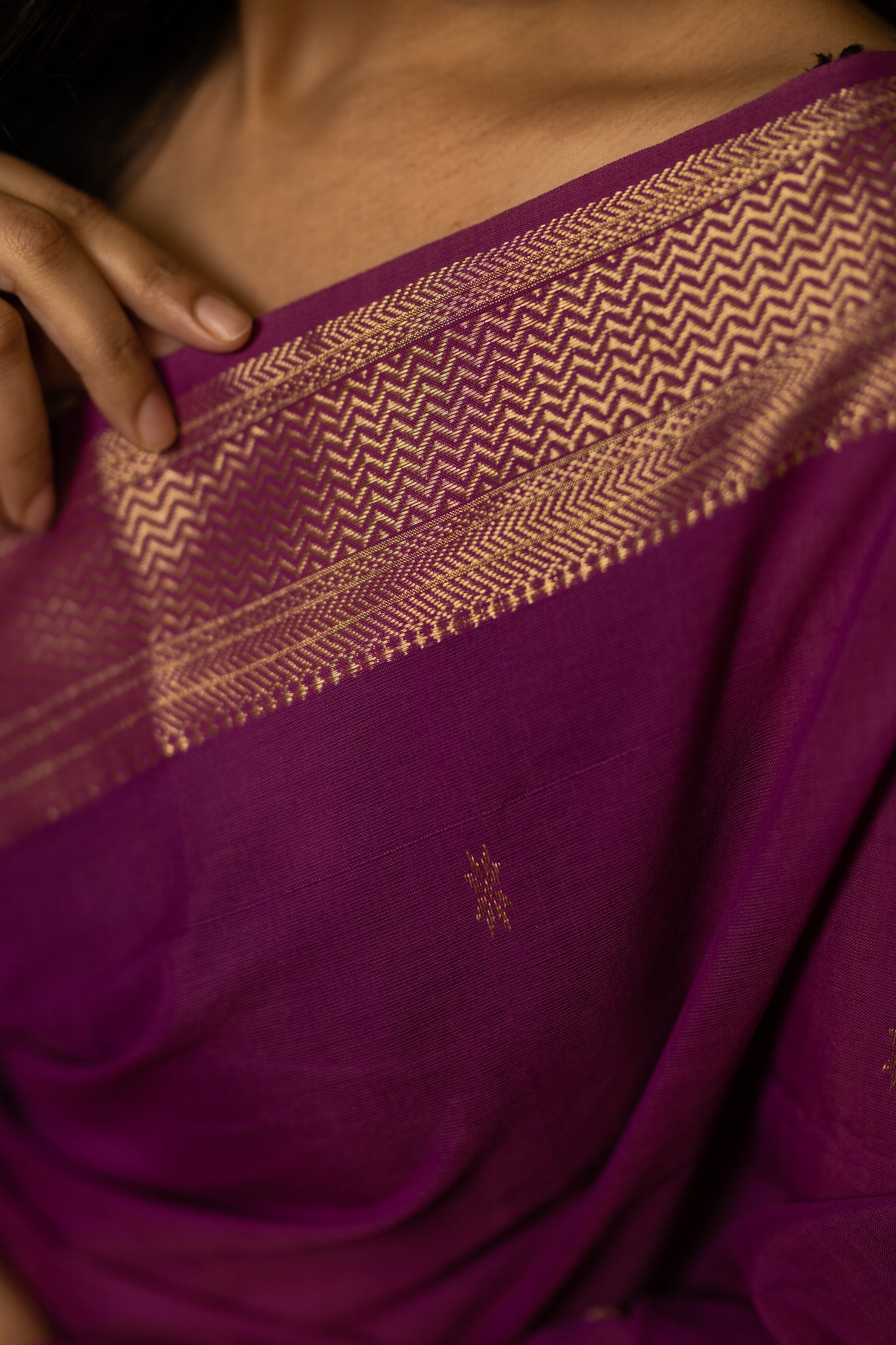 Kalawati is pure cotton hand woven saree with zari booti all over the saree and boota design on the pallu. The narmada lehar dobby design onthe border in zari is reflecting the tradition of maheshwari handloom design art.