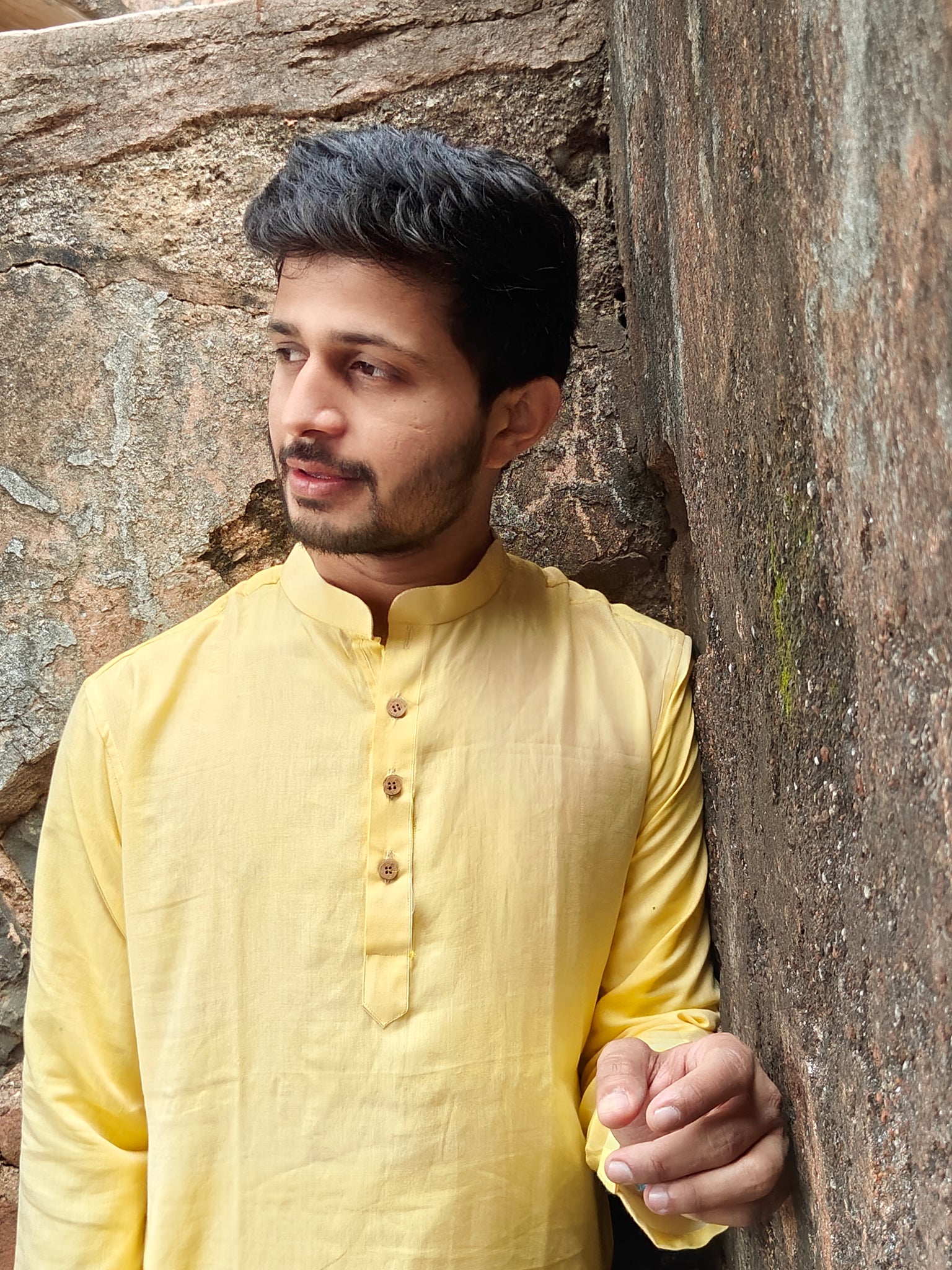 This is cotton by cotton hand woven Twil weaved on 4 paddle handloom. This has beautiful texture and ultra soft feel of the fabric.