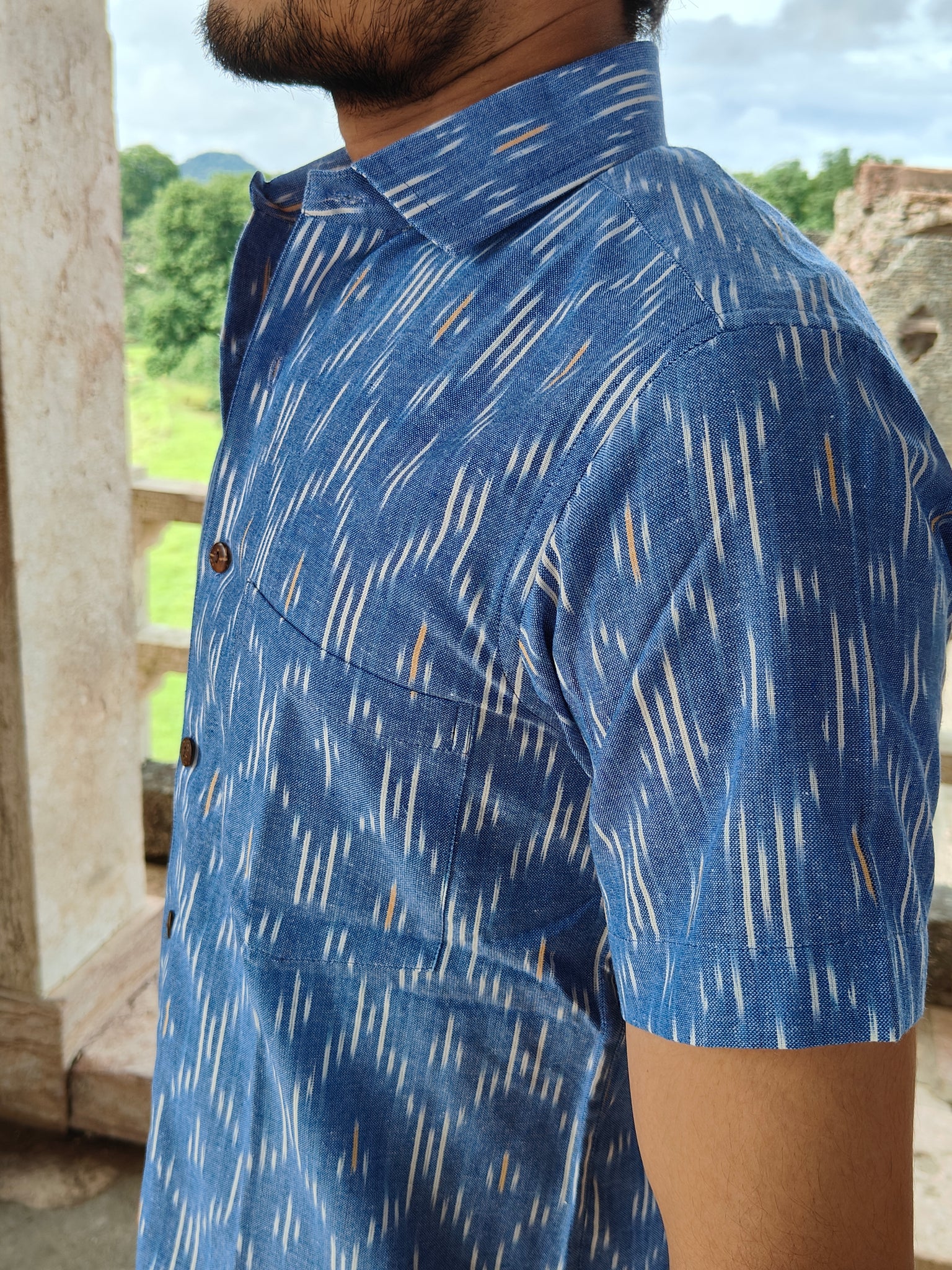 IKAT 02 COTTON SKY BLUE HALF SHIRT