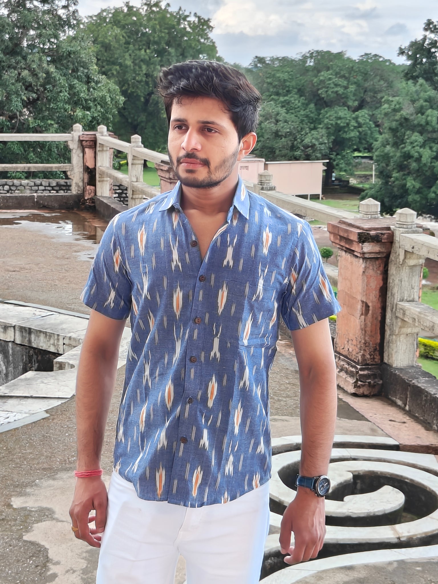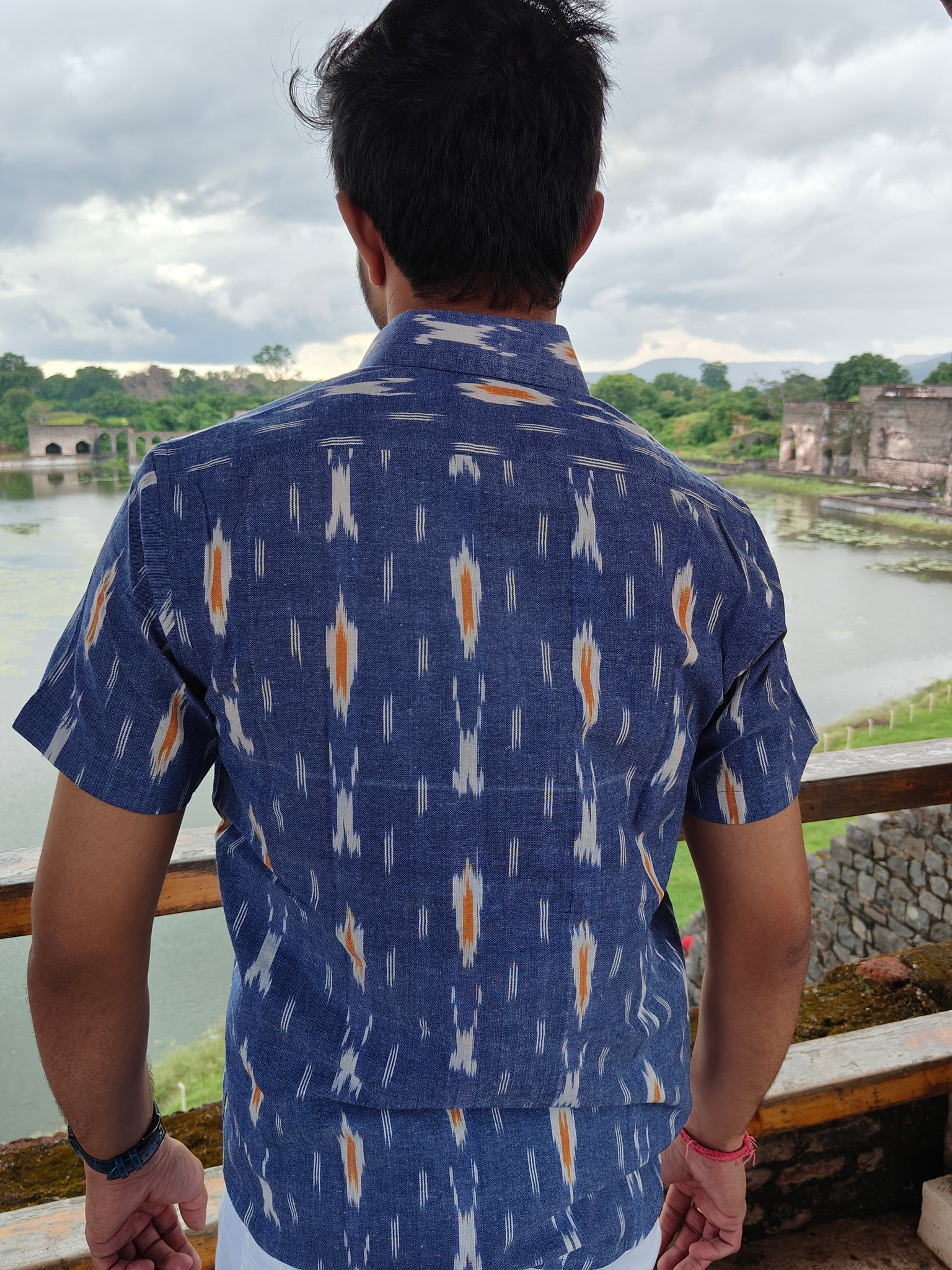 Hand woven cotton fabric on handloom. Designed and dyed beautifully in traditional ikat process.